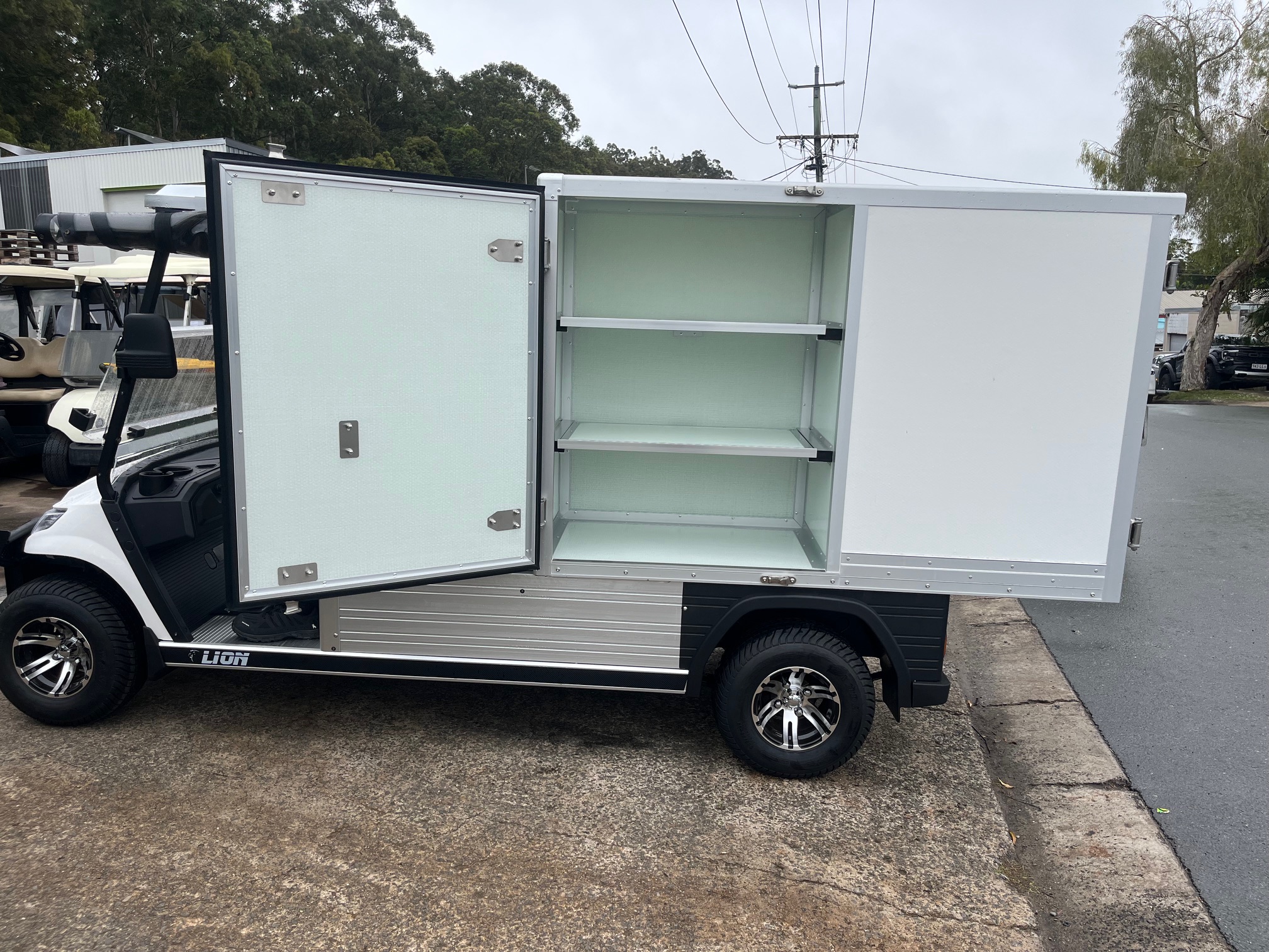 All compartments have 3 sliding and removeable shelving